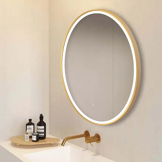 Arezzo 800mm Large Round Touch Control Illuminated Border Dimmer & Demister Mirror – Brushed Brass