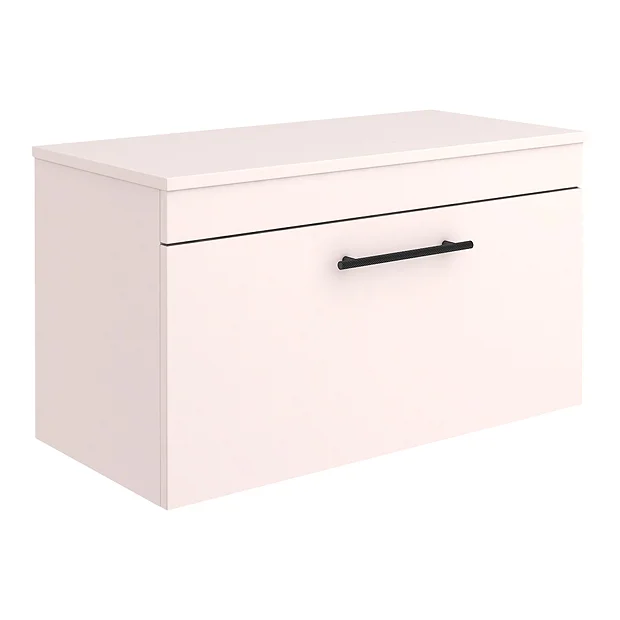 The contemporary light and fresh matt pink Arezzo Industrial style furniture range, with it’s clean lines this 800mm wide vanity unit is perfect for renewing the style in any bathroom. Designed for use with a counter top basin (not included), it’s stylish modern design hides all unsightly pipework creating a neat modern look. The units soft-closing drawer provides plenty of storage space for toiletries. Features an eye-catching and stylish matt pink finish with a on-trend round matt black knurled detail handle, great for creating an eye catching industrial look in your bathroom.