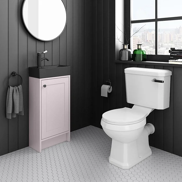 Bromley Pink Cloakroom Vanity Unit (incl. Matt Black Basin + Matt Black Handle)