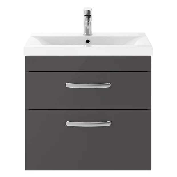 Brooklyn 600mm Gloss Grey 2 Drawer Wall Hung Vanity Unit
