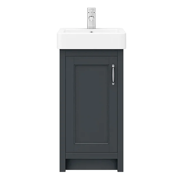Chatsworth Traditional 425mm Graphite 1 Door Vanity with Polished Chrome Finish Handle – 1 Tap Hole