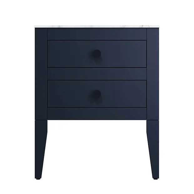Crosswater Canvass Deep Indigo Blue 600mm Double Drawer Unit with Carrara Marble Effect Worktop