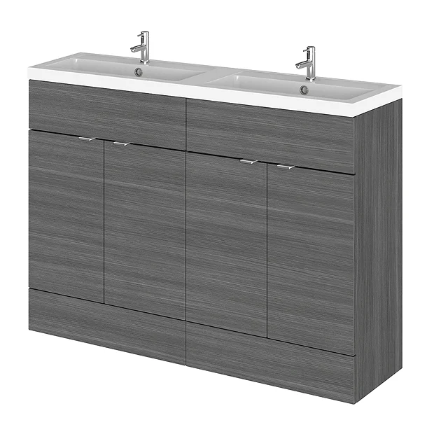 Hudson Reed Fusion 1200mm Grey Avola Full Depth Floorstanding Unit & Double Basin
