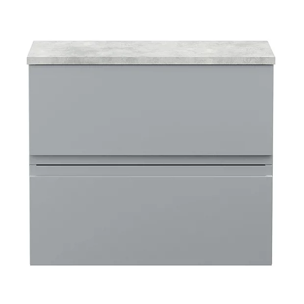 Hudson Reed Urban 600mm Satin Grey Vanity Unit – Wall Hung 2 Drawer Unit with Bellato Grey Concrete Effect Worktop – URB204LBG