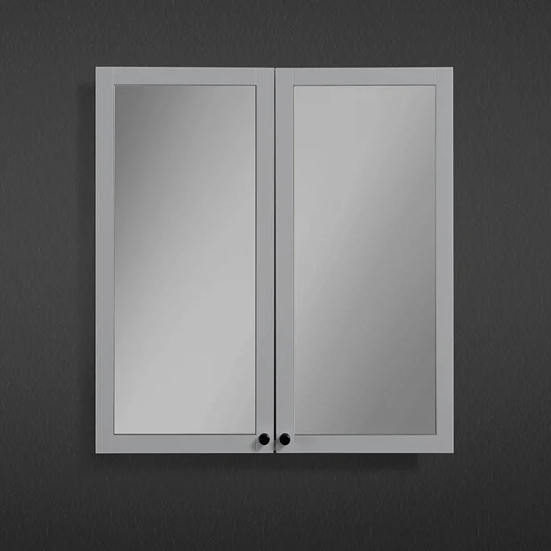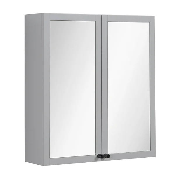 Montrose 600mm Wall Mounted 2-Door Mirrored Cabinet in Dove Grey with Matt Black Knobs