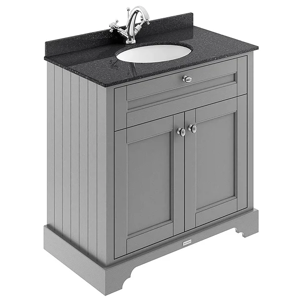 Old London 800mm Cabinet & Single Bowl Black Marble Top – Storm Grey